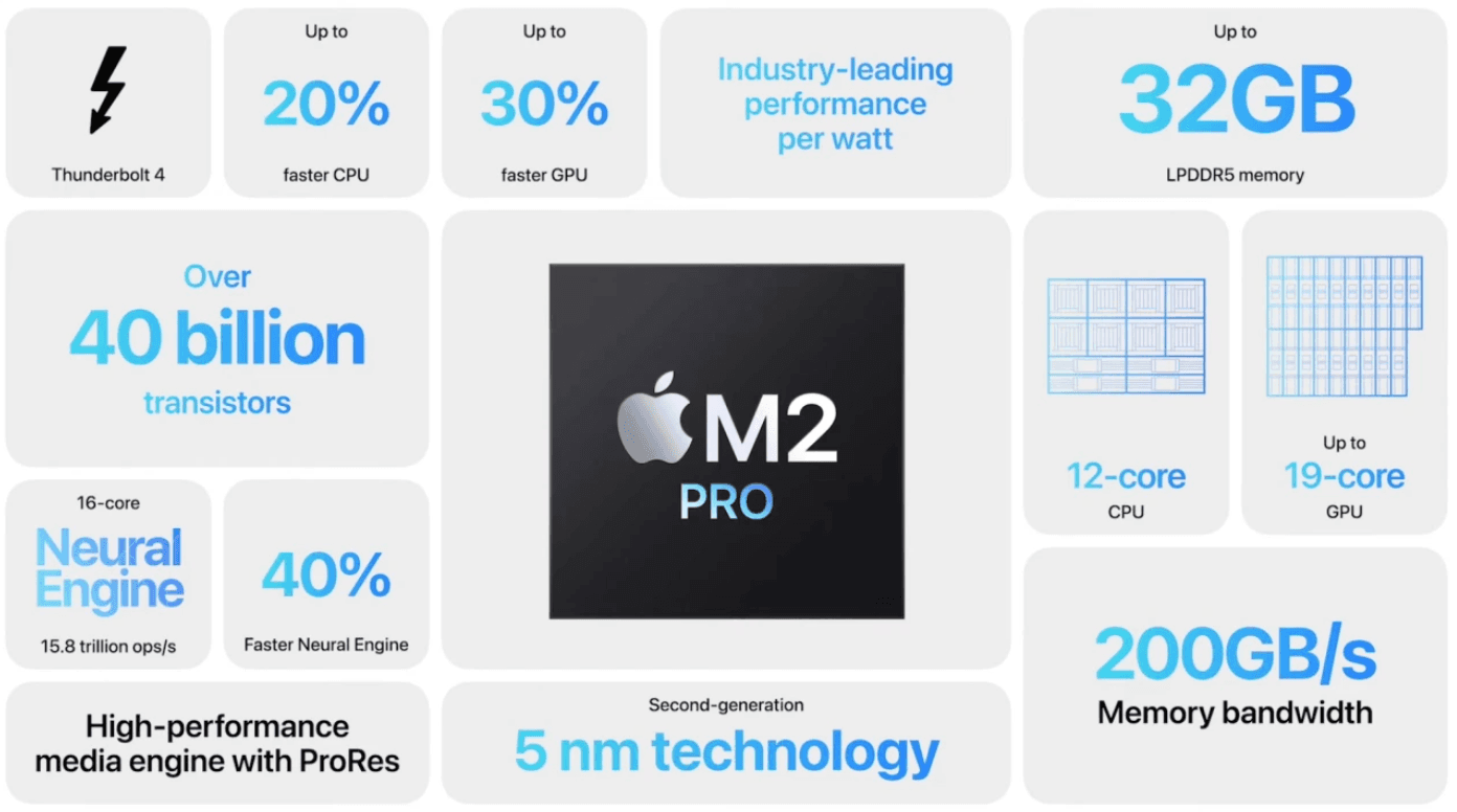 Chip M2 Pro phiên bản tiêu chuẩn đang được trang bị CPU 10 lõi và GPU 16 lõi, đi kèm với đó là tùy chọn tối đa 32GB RAM. Hãng sẽ thực hiện một số nâng cấp trên con chip M3 Pro mới, trong đó có tùy chọn cho phép người dùng nâng cấp tối đa dung lượng RAM lên đến 36GB.