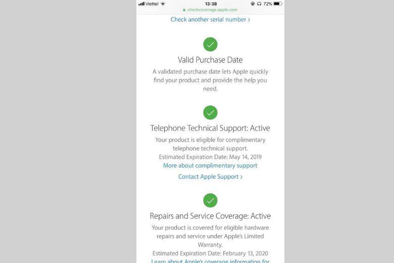 | Cách kiểm tra gói bảo hiểm | Check trên: Covered by AppleCare Protection Plan | Check trên: Covered by AppleCare+ |