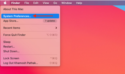 Bước 1: Tìm đến mục System Preference trong thanh Menu bằng cách nhấn vào biểu tượng logo Apple bên góc trái màn hình.