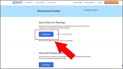 Bước 2: Chọn vào nút Download bên dưới Zoom Client for Meetings.