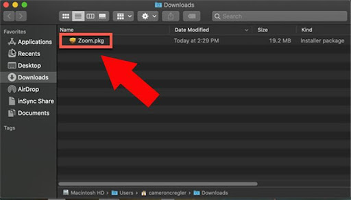 Bước 3: Trong thư mục Download, hãy tìm biểu tượng Zoom của file cài đặt. Nhấp đúp chuột vào file PKG để mở tệp.