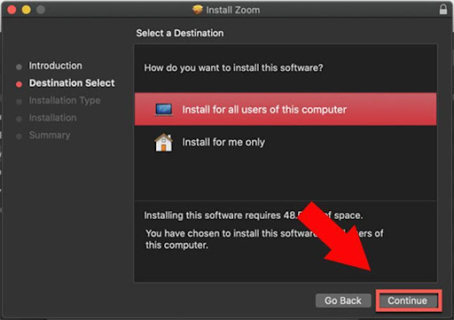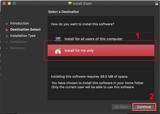 Với lựa chọn này, bạn cần quyền admin để cài đặt cho toàn bộ người dùng hiện có trên MacBook. Để thực hiện cài đặt trên, bạn chỉ cần click vào mục Install for all users of this computer và chọn Continue.