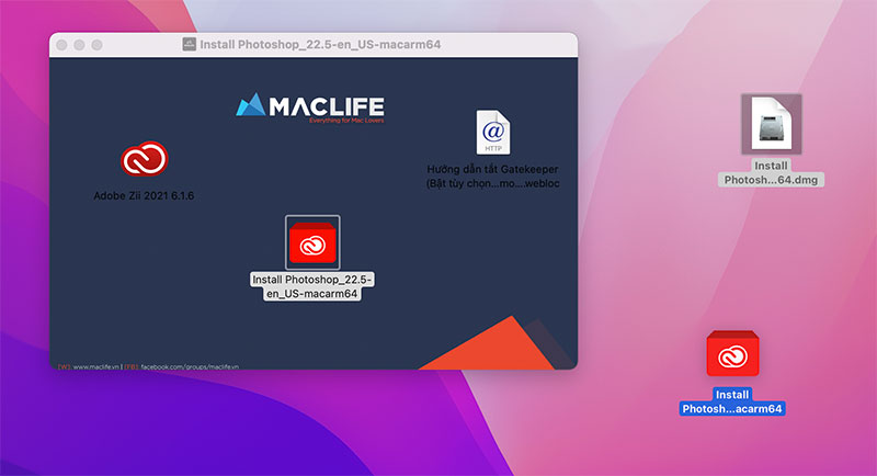 Bước 1: Bạn cần tải bộ cài Adobe Photoshop 2021 theo đường link sau – đây là bản dành riêng cho MacBook M1