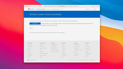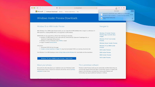 Microsoft cung cấp một phiên bản Insider dành cho tiến trình ARM của MacBook M1. Bạn có thể tải xuống hệ điều hành thông qua trang web chính thức của Microsoft một cách dễ dàng.
