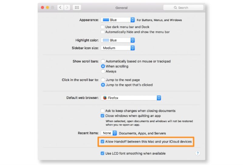 Bạn truy cập vào System Preferences, sau đó chọn General. Tiếp theo, bạn chọn Allow Handoff between this Mac and your iCloud devices.