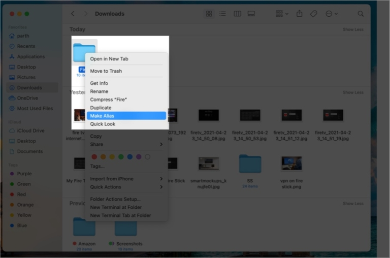 - Bước 1: Nhấn chuột phải vào thư mục cần đánh dấu => Trên màn hình xuất hiện một bảng lệnh => Chọn Make Alias.