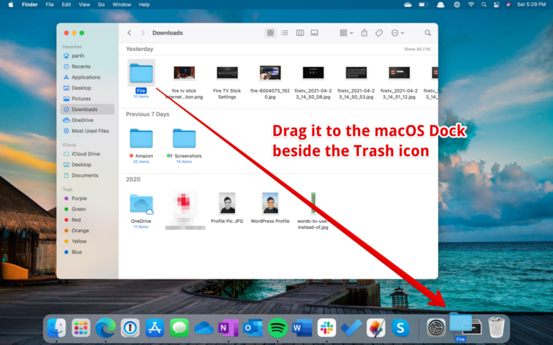 Mở Finder => Tìm thư mục bạn muốn đánh dấu => Kéo và thả nó vào Dock bên cạnh biểu tượng thùng rác.