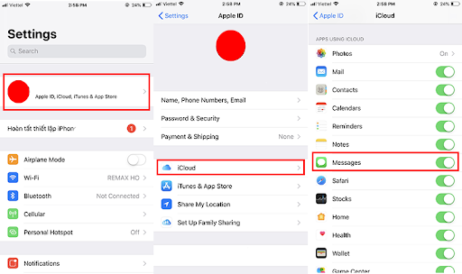 - Nhấn tích vào ô Bật tin nhắn trong iCloud và hoàn tất.