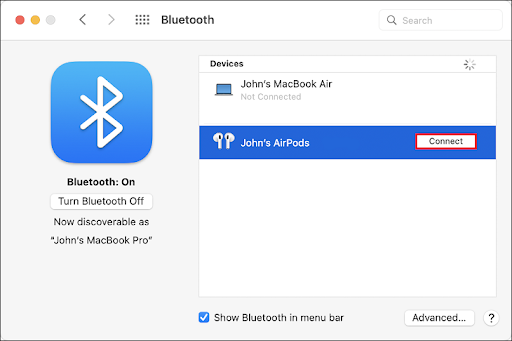 Trường hợp 2: Kết nối Airpods với MacBook bằng Bluetooth
