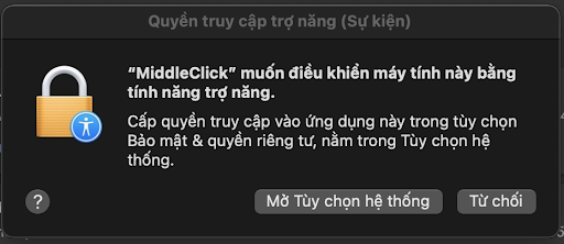 Trước khi bắt đầu khởi chạy ứng dụng, bạn cần cấp quyền cho phép ứng dụng Middle Click chạy trong phần Trợ năng. Cách thực hiện như hướng dẫn dưới đây.