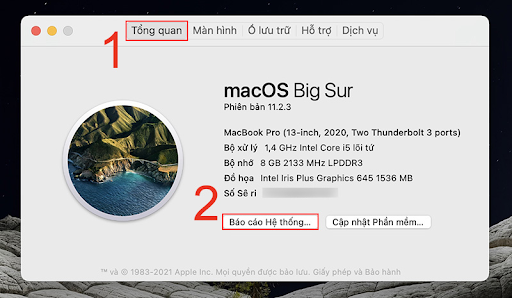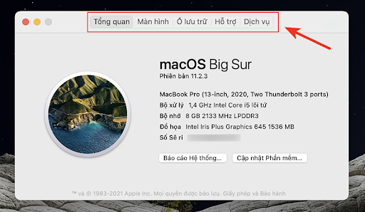 Vào mục này, bạn sẽ thấy những thông tin chi tiết trên MacBook của bạn.