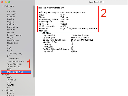 4. Kiểm tra card đồ hoạ (GPU) của MacBook