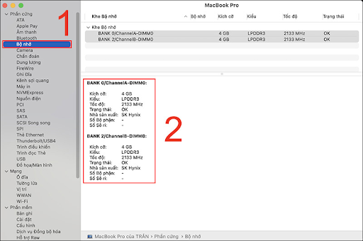 Trong hướng dẫn này thì MacBook có tốc độ RAM là 2133 MHz, ngoài ra còn có những mức khác như 2400 MHz, 2600 MHz,…
