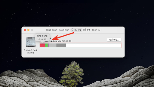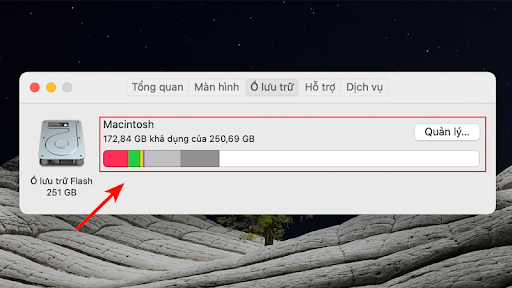 Bao gồm thông tin về dung lượng ổ lưu trữ Flash, các loại thông tin được lưu trữ. Bạn còn có thể biết được dung lượng bộ nhớ đã sử dụng và mức dung lượng còn trống trên MacBook của bạn.