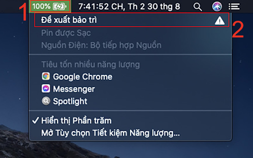 Kiểm tra tình trạng pin MacBook trên thanh menu