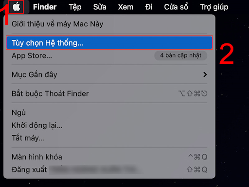 Bước 1: Nhấn vào biểu tượng Apple ở góc trái màn hình > Chọn Tùy chọn Hệ thống.