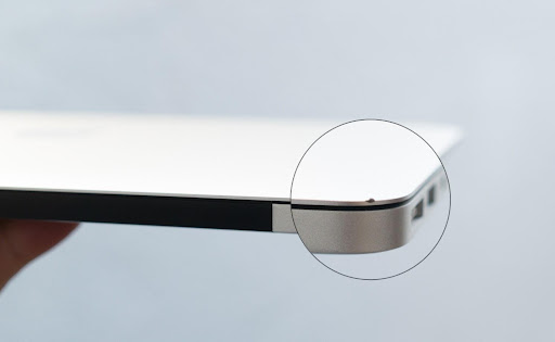 Dù là MacBook Pro cũ hay MacBook Air cũ thì việc thân máy có những vết trầy xước nhỏ là việc không thể tránh khỏi. Thế nhưng bạn nên lưu tâm đến những nơi thân máy bị biến dạng, móp méo vì rất có thể chiếc MacBook đã bị rơi hoặc va đập mạnh.