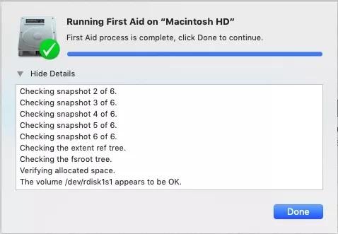 Quá trình kiểm tra sẽ mất vài phút, sau khi hoàn tất bạn sẽ có một danh sách các thông báo liên quan đến tình trạng ổ cứng của máy. Nếu bạn nhận thấy bất kỳ thông báo nào có màu đỏ nghĩa là ổ cứng của chiếc MacBook đang có vấn đề.