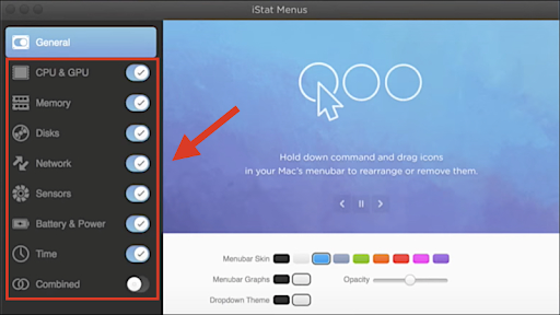iStat Menus là ứng dụng cho bạn xem chi tiết các thông số một cách chi tiết trên MacBook của bạn, bao gồm CPU, GPU, bộ nhớ, dung lượng bộ cứng đã sử dụng, tốc độ kết nối Internet, dung lượng pin,…