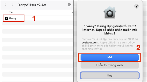 - Bước 2: Nhấn ứng dụng Fanny > Nhấn Mở để cấp phép cho ứng dụng.
