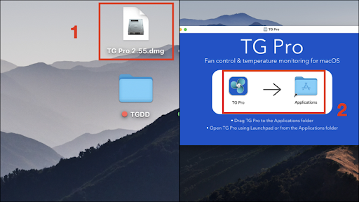Để tải ứng dụng TG Pro, bạn nhấn TẠI ĐÂY > Kéo ứng dụng TG Pro vào trong mục Applications.