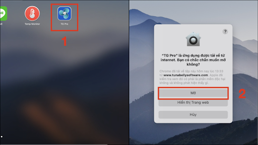 - Bước 1: Mở ứng dụng TG Pro > Chọn Mở để cấp quyền cho ứng dụng.