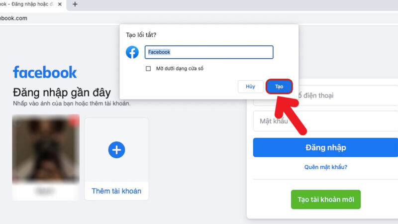 Bước 3: Bạn mở trình duyệt Chrome và truy cập vào trang web của Facebook