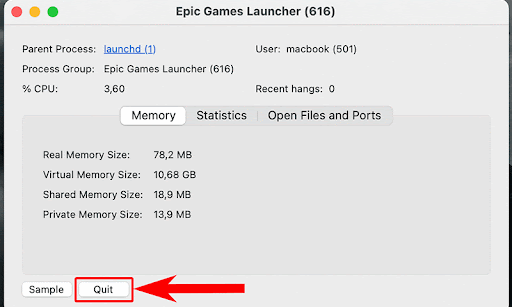 Bước 2: Ở bảng thông tin hiển thị, hãy chọn ứng dụng mà bạn muốn thoát và nhấn Quit.