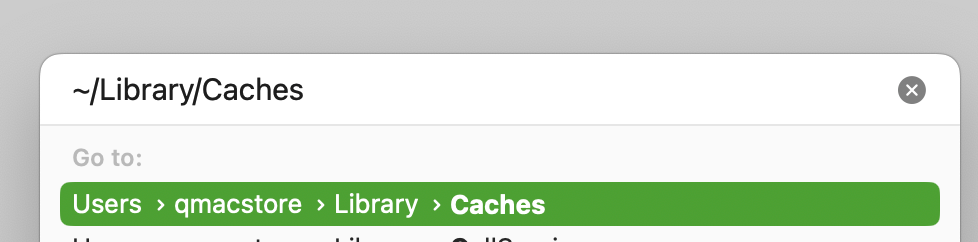 Bước 3: Trong hộp thoại Go to the folder, nhập đường dẫn sau: ~/Library/Caches. Nhấn Go.
