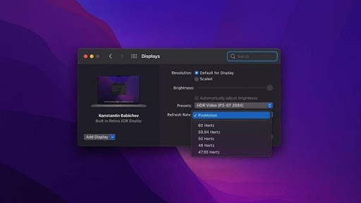 Ngoài ra, đây cũng là mẫu MacBook đầu tiên của Apple trang bị màn hình có tần số quét 120HZ cùng công nghệ ProMotion truyền tải hình ảnh mượt mà vượt trội.