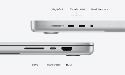 Apple đã chứng tỏ chiếc MacBook Pro 14” 2021 là một chiếc máy dành cho công việc chuyên nghiệp khi hãng đã đưa trở lại những cống kết nối quen thuộc. Không còn chỉ được trang bị cổng Thunderbolt và jack cắm tai nghe 3.5mm, MacBook Pro 2021 còn được trang bị cổng HDMI, khe thẻ nhớ SDXC, Thunderbolt 4 và sạc Magsafe.