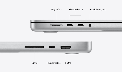 Hầu hết mọi người đều hưởng ứng tích cực việc Apple đưa các cổng kết nối thông dụng trở lại với MacBook Pro 14” và 16”. Ngoài 1 cổng Thunderbolt 4 truyền tải dữ liệu tốc độ cao, người dùng còn có 1 cổng HDMI, khe cắm SDXC và cổng sạc MagSafe tiện lợi. Điều này giúp người dùng có thể dễ dàng kết nối các thiết bị ngoại vi mà không cần phải thông qua các cổng chuyển phức tạp, bên cạnh đó cũng nâng cao tính bảo mật thông tin cho người sử dụng.