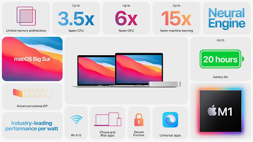 Apple M1 đã mở ra một kỷ nguyên mới không chỉ cho dòng sản phẩm MacBook của Apple mà còn là một kỷ nguyên công nghệ mới của thế giới. Bên trong một thiết kế nhỏ gọn của MacBook Air M1 là một hiệu năng mạnh mẽ để có thể hoàn thành mượt mà mọi tác vụ mà người dùng yêu cầu. Đặc biệt với 7 hoặc 8 nhân GPU tích hợp thì MacBook Air M1 có thể xử lý các hiệu ứng đồ họa mượt mà, rất phù hợp với nhóm người dùng đang học thiết kế đồ họa.
