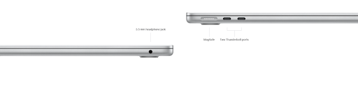 Cổng sạc Magsafe thế hệ mới đã quay lại trên MacBook Air M2 giống như trên người đàn anh MacBook Pro 2021. Bên cạnh đó, máy cũng được trang bị 2 cổng USB Type C tích hợp Thunderbolt và cổng jack 3.5mm. Khá đáng tiếc là phiên bản MacBook Air 2022 không được trang bị cổng HDMI nhưng với những cổng kết nối trên vẫn là quá đủ.