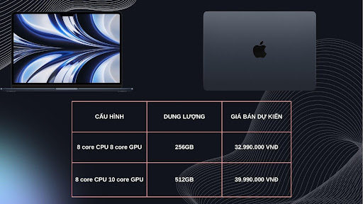 Về giá bán, MacBook Air M2 2022 có giá bán dự kiến giao động từ 32-34 triệu đồng cho phiên bản cơ bản. Với phiên bản cao cấp nhất có giá lên đến 39 triệu đồng. Theo QMac Store nhận định, trong thời gian đầu thì sản phẩm này sẽ thường xuyên cháy hàng làm giá cả sẽ dao động trong khoảng vài triệu tùy cửa hàng.