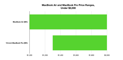MacBook Air M1 và MacBook Pro M1 cùng sử dụng con chip M1 mới có hiệu năng gần tương tự nhau, điều này đã vô tình thu hẹp khoảng cách về hiệu năng của dòng sản phẩm cơ bản và dòng Pro của Apple. Bên cạnh đó, việc cung cấp nhiều option tùy chọn RAM và dung lượng bộ nhớ SSD cũng làm người dùng khó lựa chọn hơn giữa các dòng sản phẩm này.