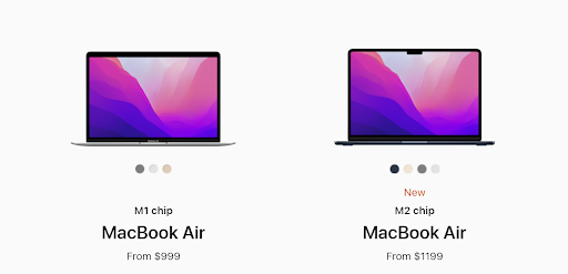 MacBook Air M2 đã được Apple ra mắt vào tháng 6 năm nay với nhiều cải tiến ấn tượng về mặt hiệu năng cũng như thiết kế mới năng động cùng nhiều màu sắc trẻ trung. Dù giá bán trên trang chủ Apple Store của mẫu MacBook Air M2 chỉ cao hơn 200$ so với MacBook Air M1 nhưng thực tế chiếc MacBook Air 2022 đang có mức giá dự kiến khá cao tại thị trường Việt Nam. Bên cạnh việc MacBook Air M1 đang có giá khá tốt tại Việt Nam ở thời điểm hiện tại thì chắc chắn khi được lên kệ vào tháng 7 này chiếc MacBook Air 2022 sẽ có mức giá chênh lệch lên đến cả chục triệu đồng khiến người dùng phải đắn đo.