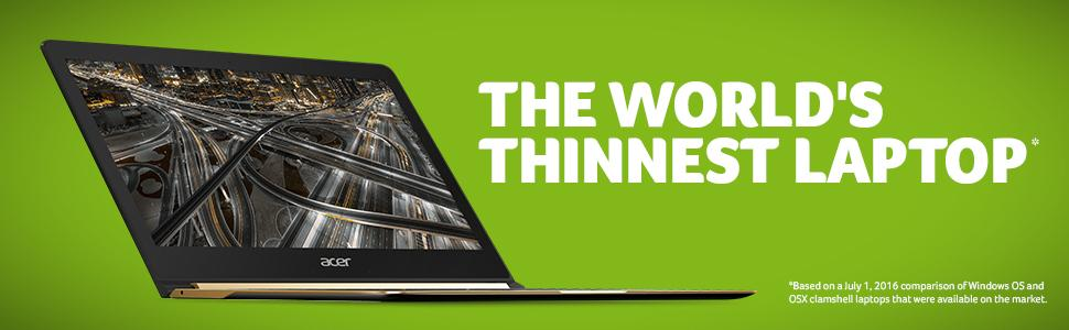 Acer Swift 7 từng là người nắm giữ vị trí chiếc laptop mỏng nhẹ nhất thế giới trước khi Samsung Galaxy Chromebook xuất hiện. Chiếc laptop Acer Swift 7 mỏng vỏn vẹn chỉ 9.9mm và trọng lượng chỉ 0.89kg.